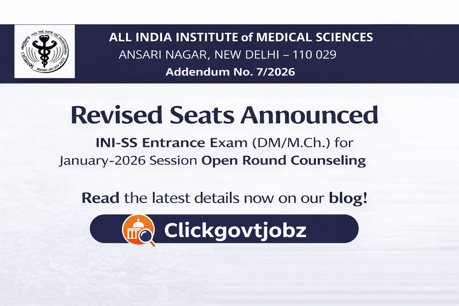 Tags: AIIMS INI-SS 2026, AIIMS Seat Revision, Medical Entrance Exam, AIIMS Counselling, Clickgovtjobz