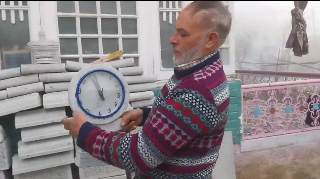 DemandSrinagar Dec 30 : Abdul Aziz Wani, a skilled sculptor from Saderkot Bala village in Bandipora district, has showcased his craftsmanship by creating a remarkable stone clock in just four days.Expressing the dedication behind his work, Aziz highlighted the challenge of crafting such intricate pieces and emphasized the hard work involved.Aziz shared a heartwarming story of inspiration, revealing that his daughter, currently serving at Soura, expressed a desire for a stone clock after purchasing a copper one.