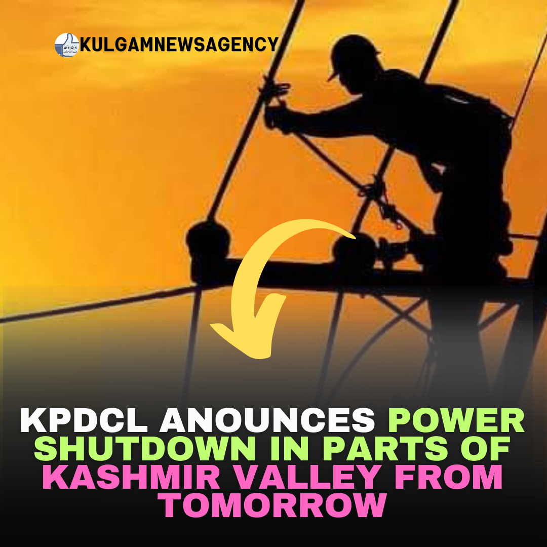 KPDCL Anounces Power Shutdown in Parts of Kashmir Valley from TomorrowSrinagar,Nov 19 (GNS):In view of Reconductoring of 33 KV Khanyar- Rainawari Line from 0.15 ACSR to 0.2 ACSR, the power supply to Receiving Stations including Khanyar, Rainawari & Takanwari and areas including Miskeen Bagh, Rozabal, Magdoom Sb, Hazuri Bagh, Jogilankar, JLNM Sangam, Islamia College, Narwara. Hospital, Kondabal, Hasanabad, Palpora shall remain affected on November 20 & 23 from 10 AM to 5:00 PM.