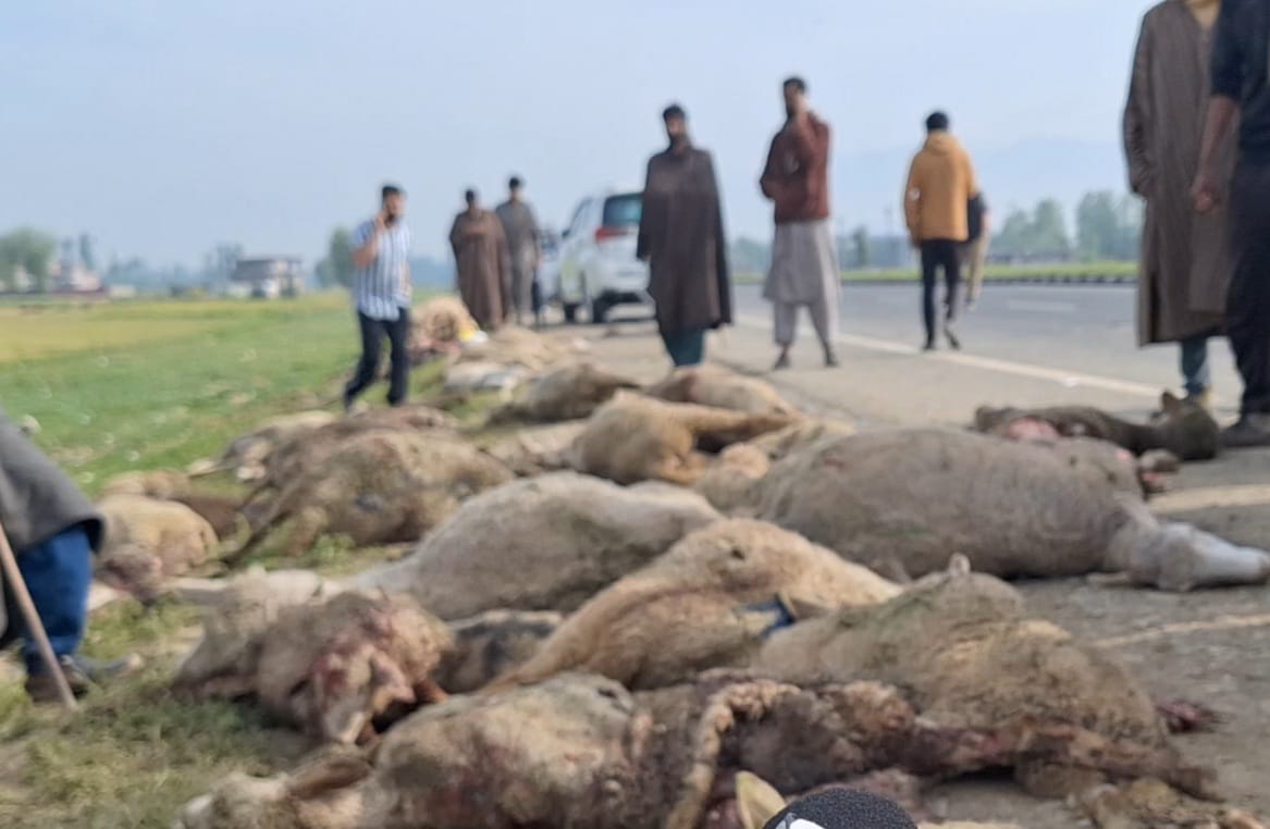 An official told news agency—that a flock of sheep were hit by a speedy tempo near Khudwani on national highway late on Friday night.